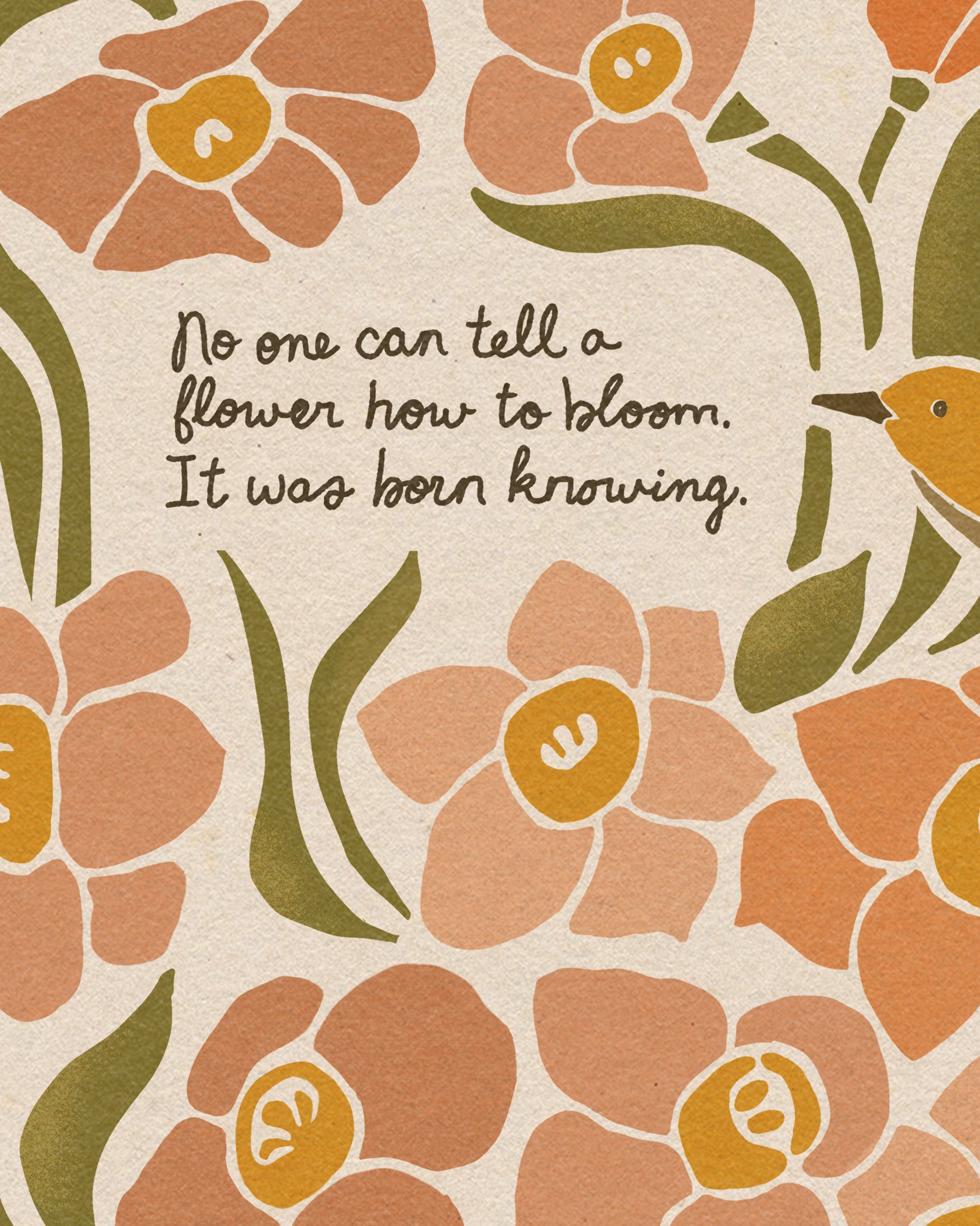 "You can't tell a flower how to bloom. it was born knowing." | Daffodils & Goldfinch | Wooden Hanger